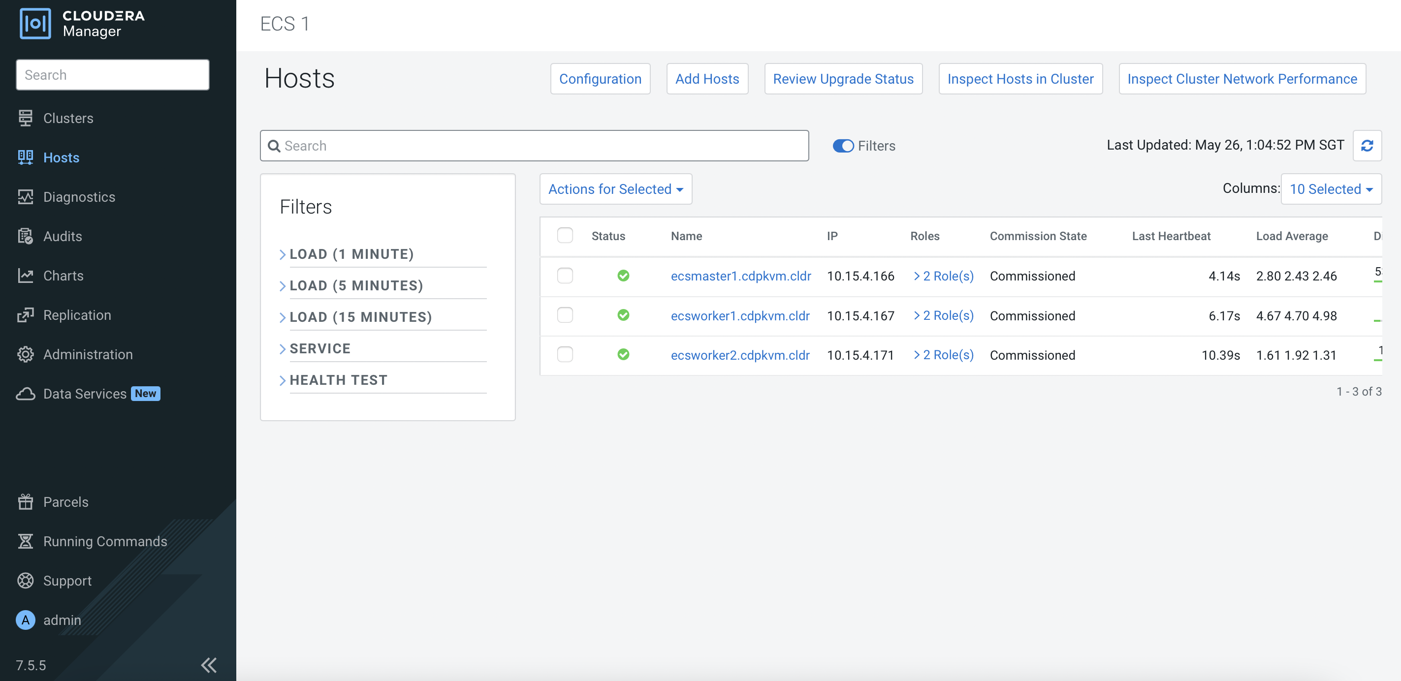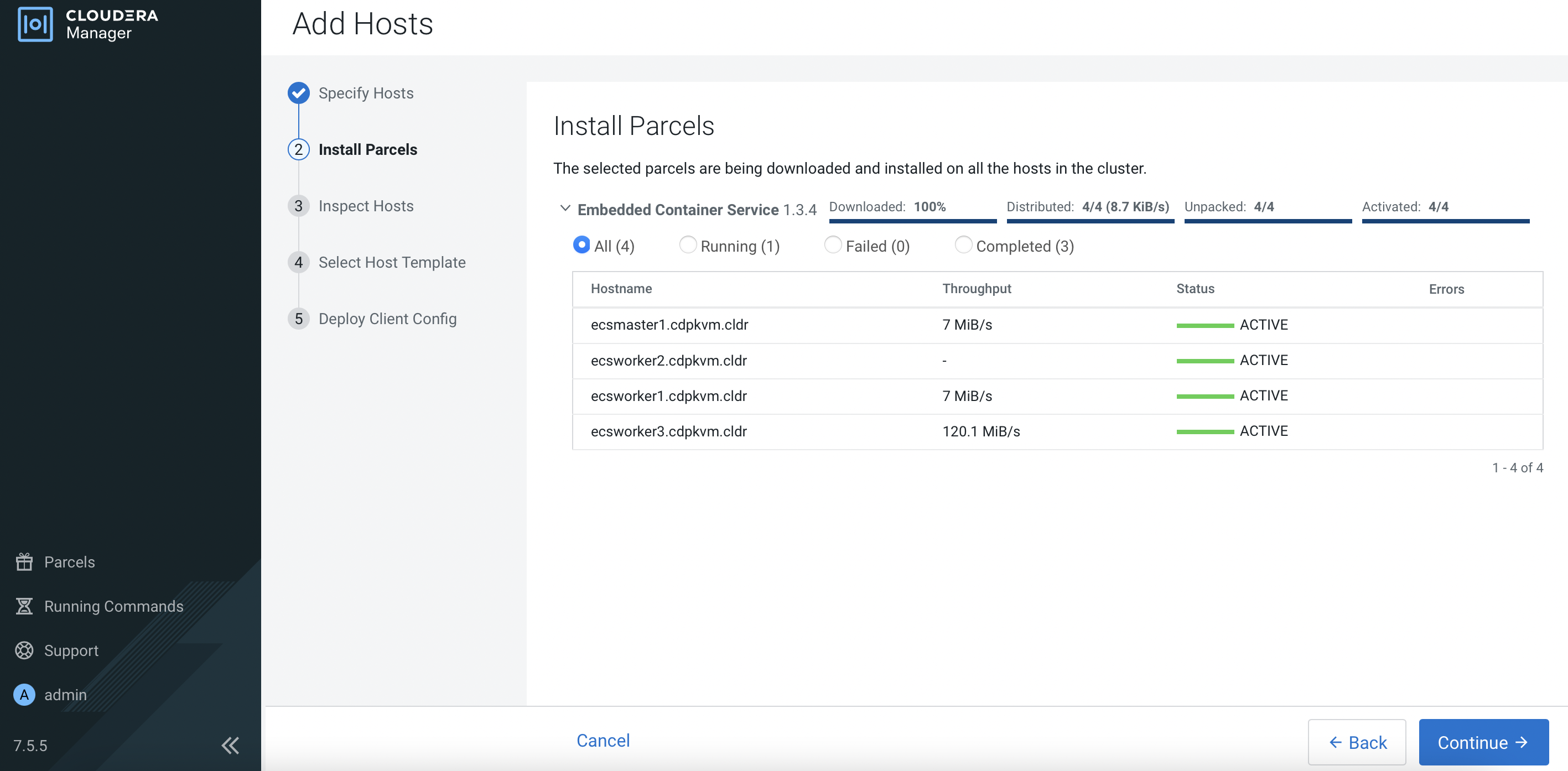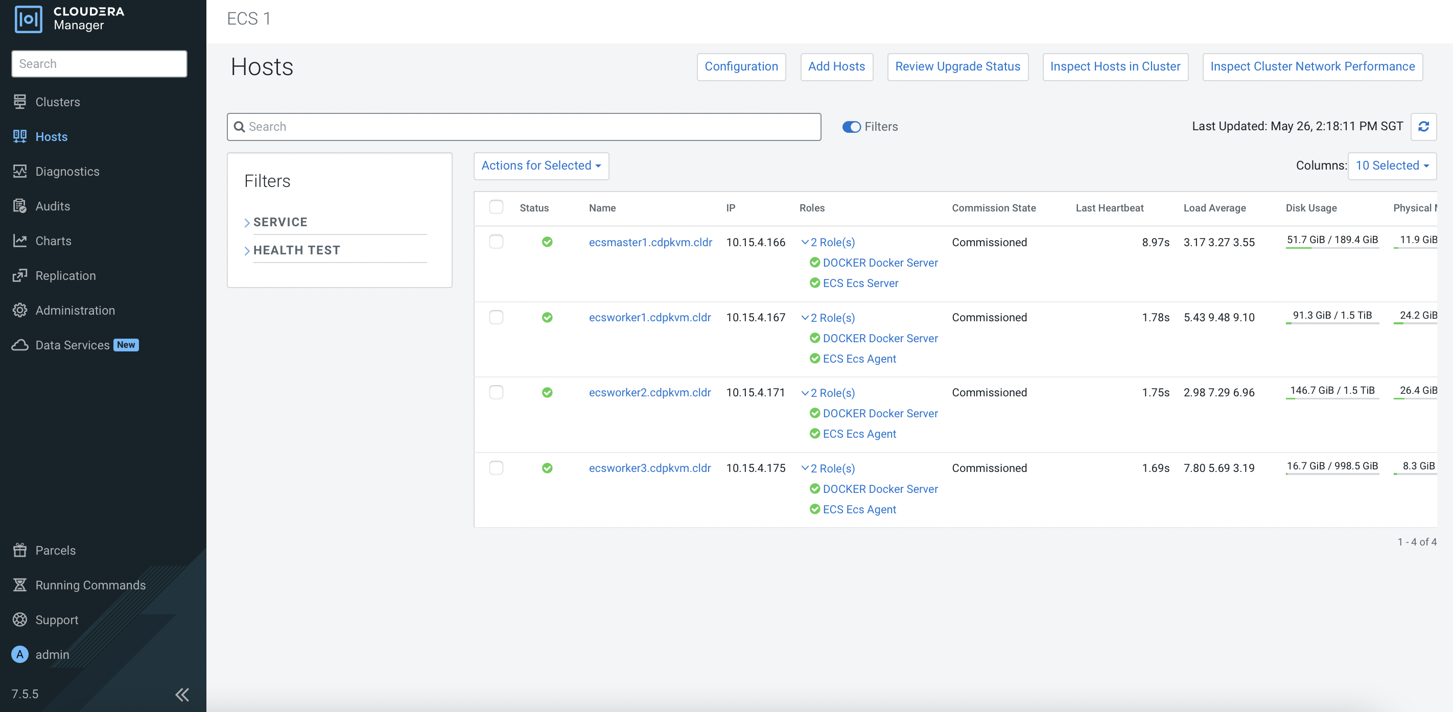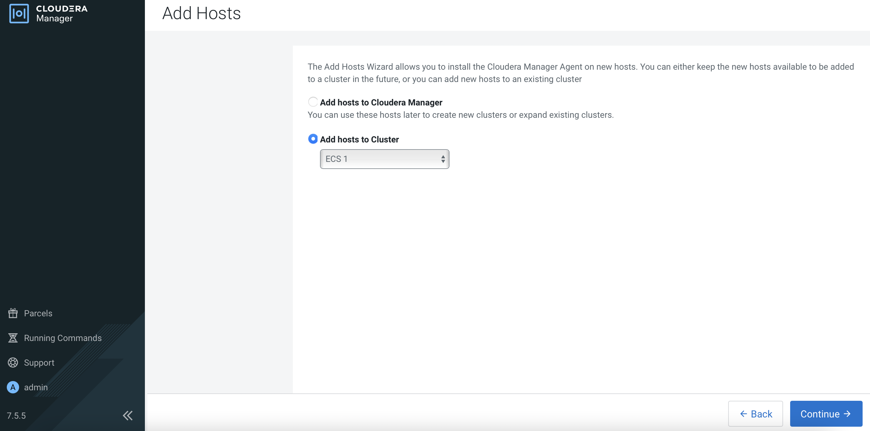 Clusters>ECS 1. Click3 Hoststo view the following page. ClickAdd Hosts.