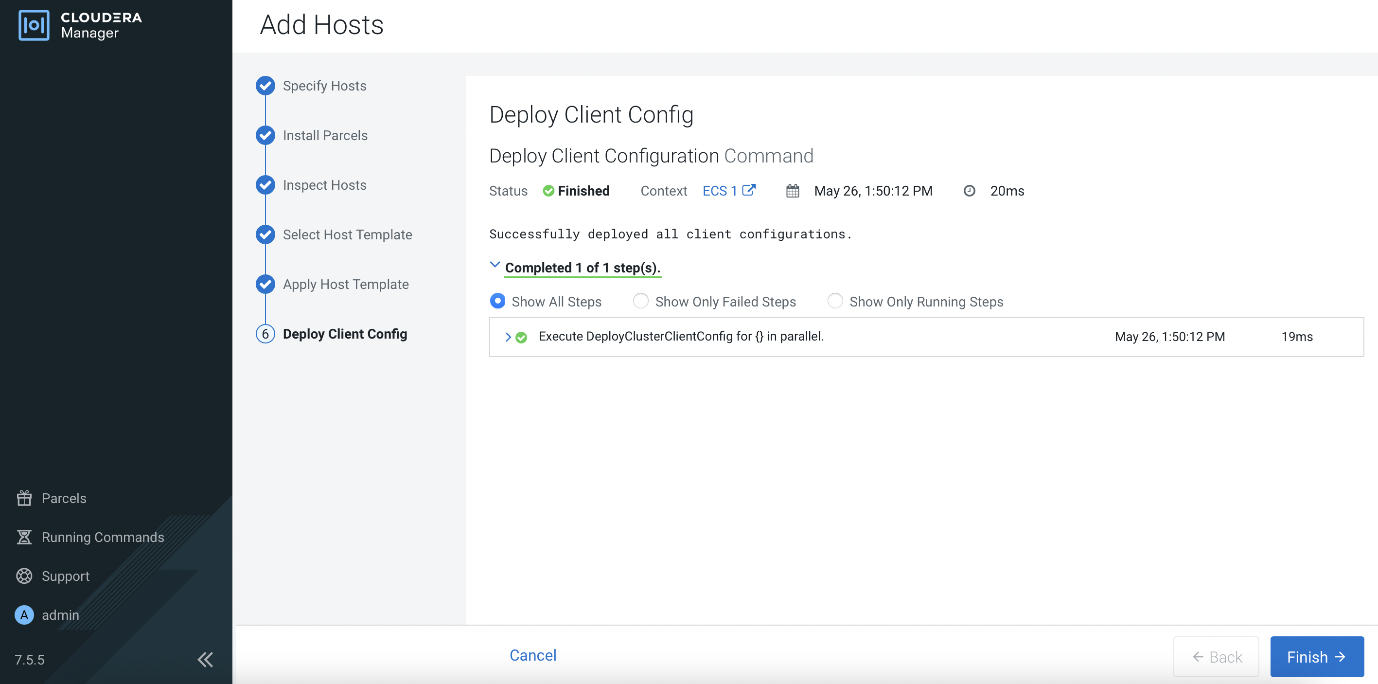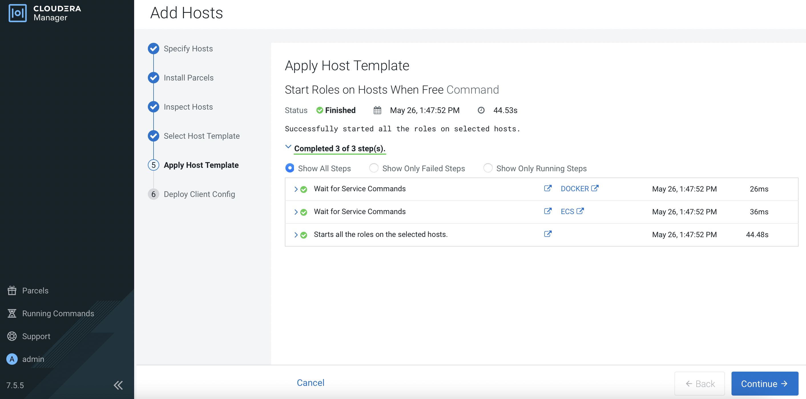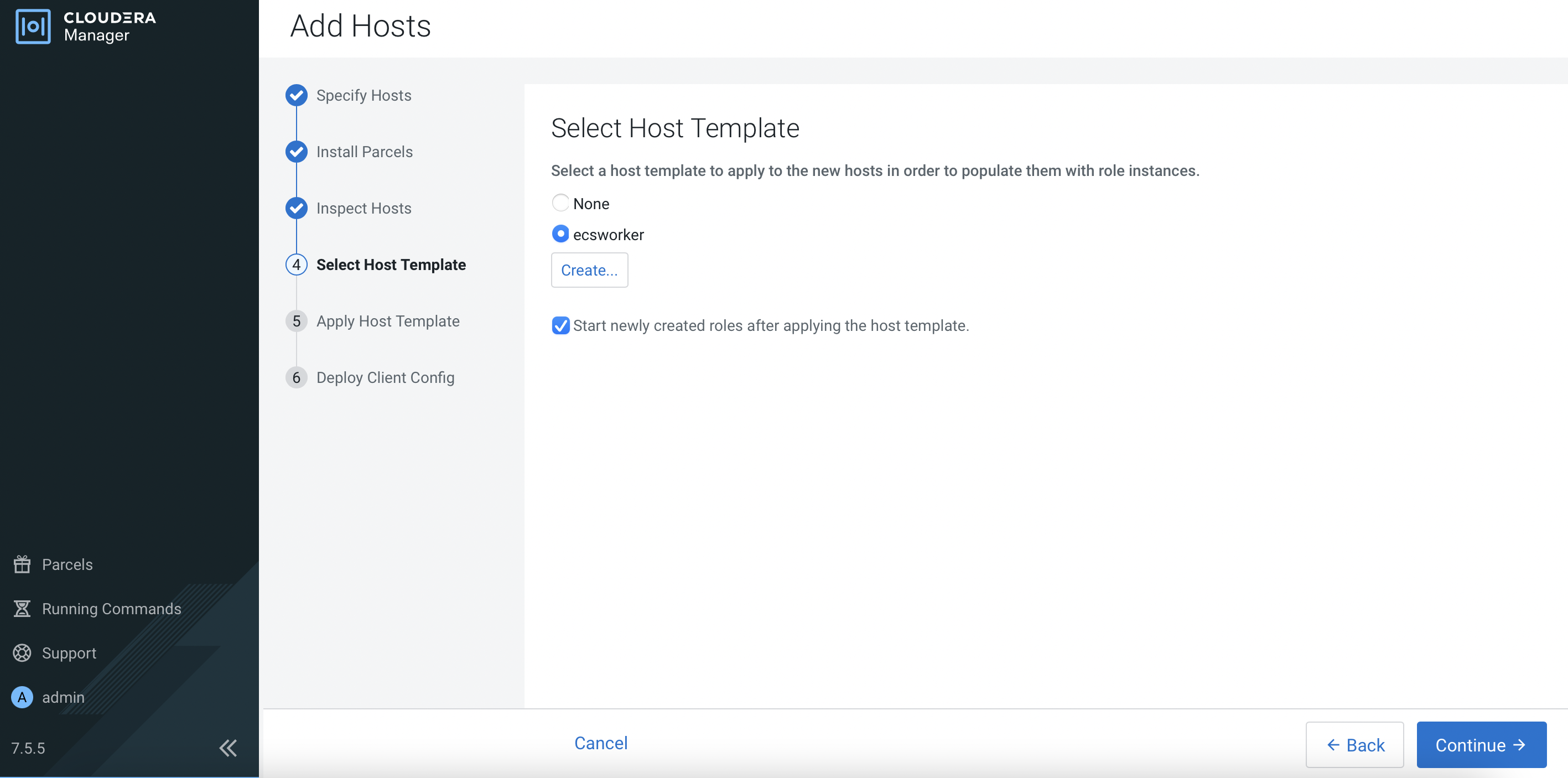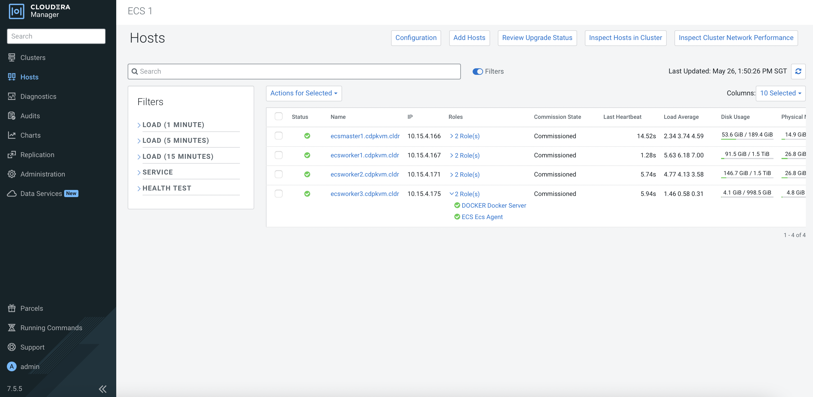 Clusters>ECS 1. Click3 Hoststo view the following page. ClickAdd Hosts.