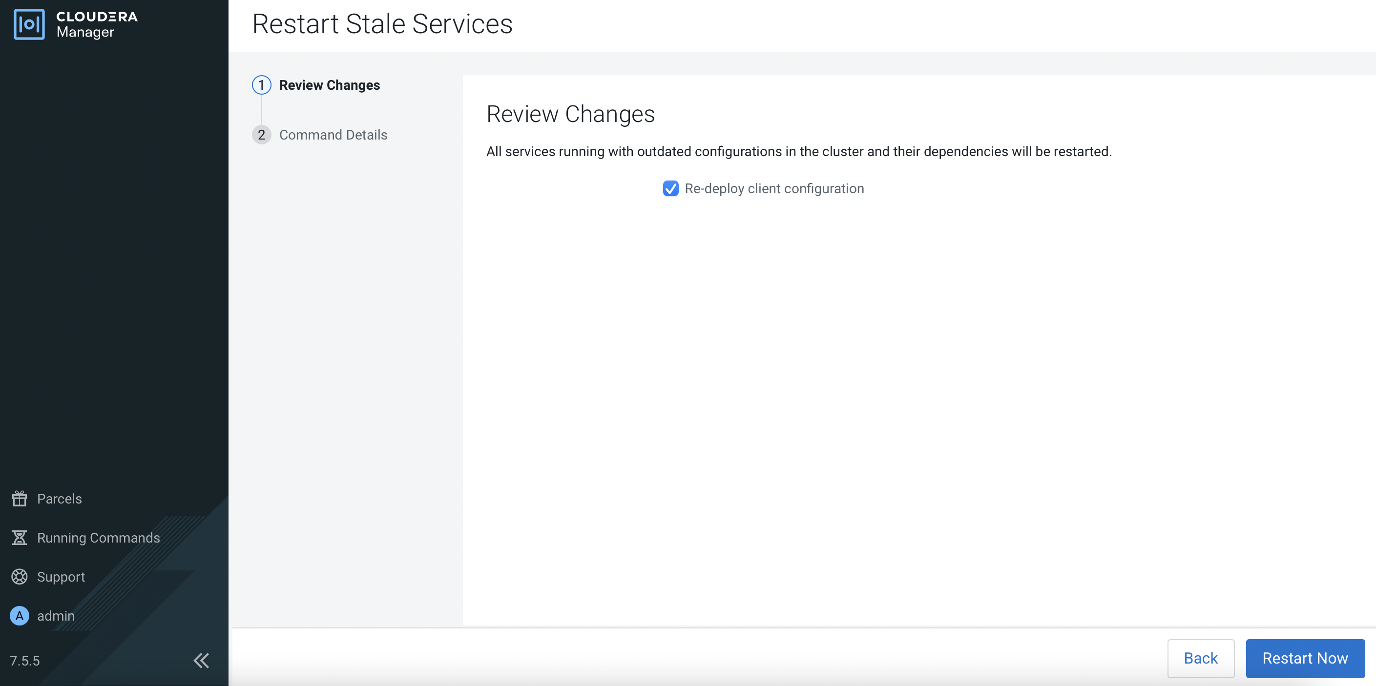 Re-deploy client configurationand subsequently clickRestart Now.