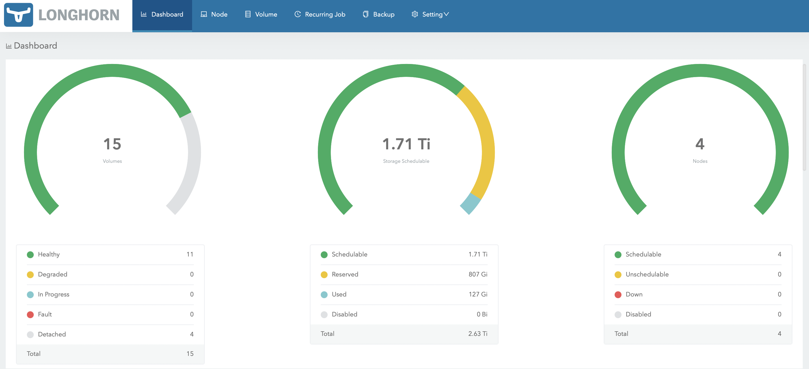 The Longhorn dashboard now displays a total of 4 Longhorn nodes. This implies that the new ECS node has been added into the Longhorn cluster successfully.