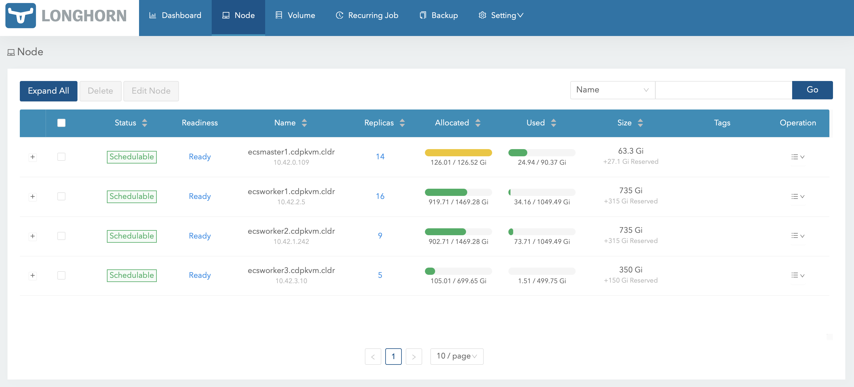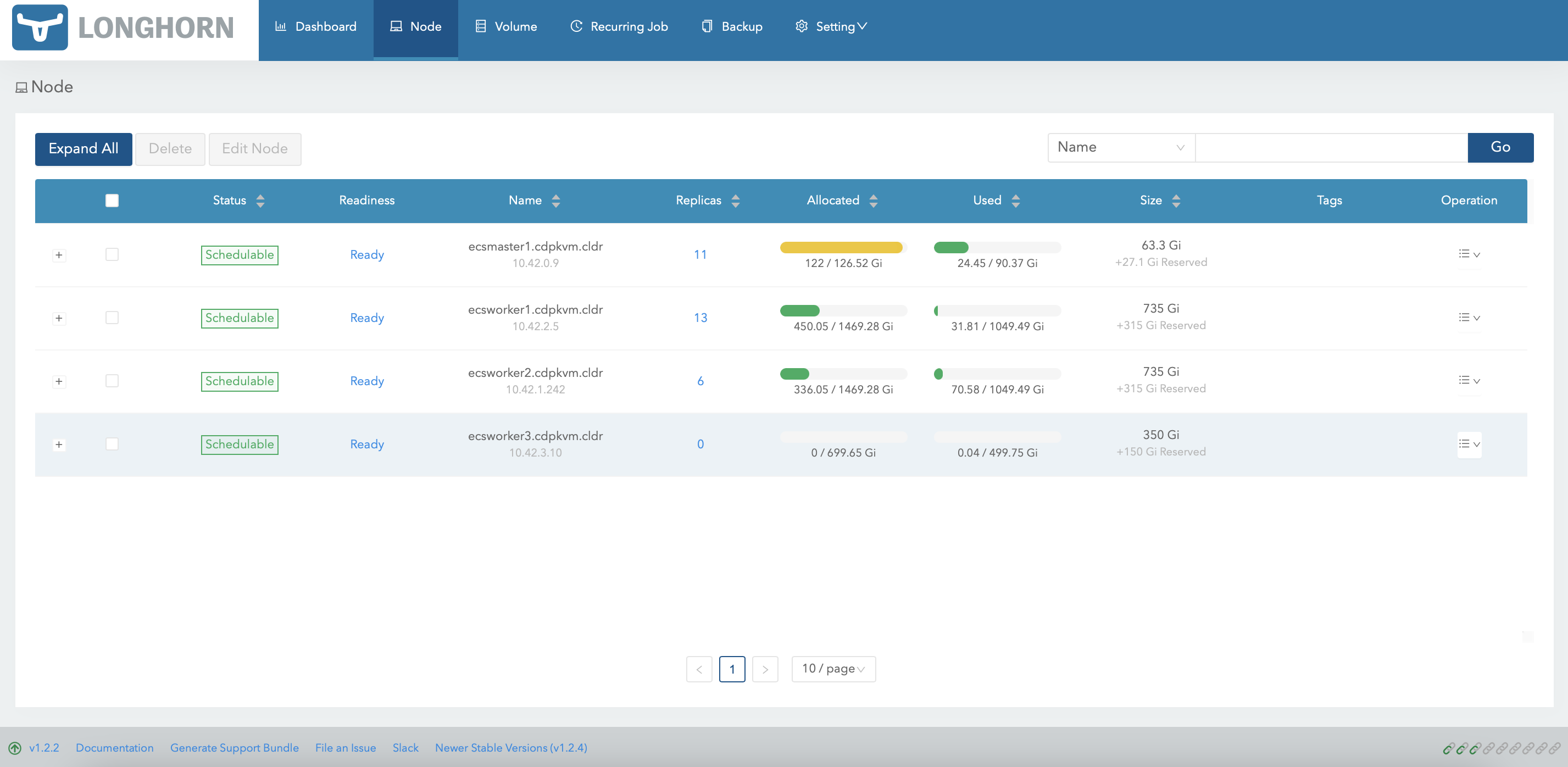 Clusters>ECS>Storage UIto launch the Longhorn dashboard.