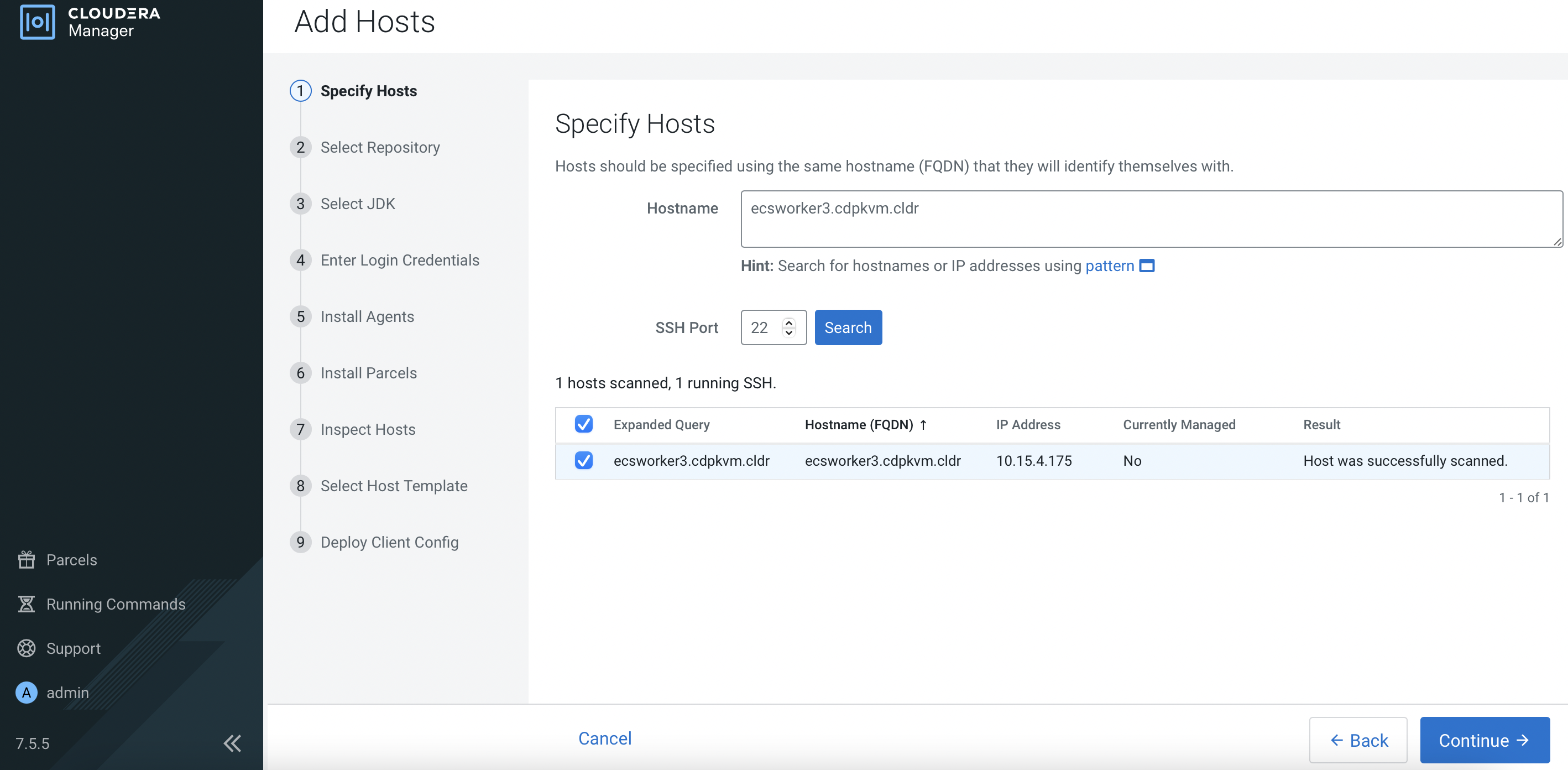Search. Upon successful scan, the hostname alongside each host's IP address will appear. Check the details before clickingContinue.