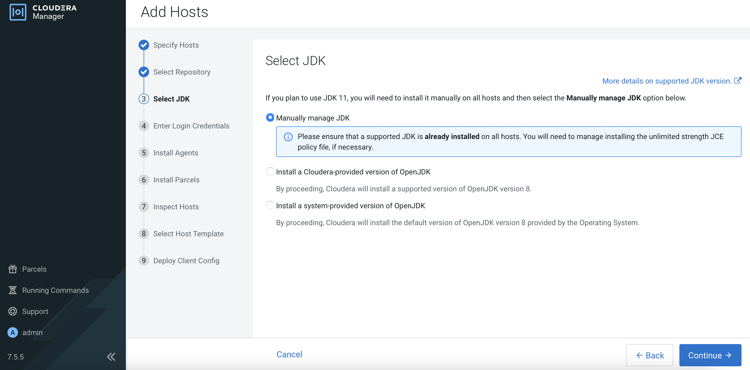 Manually manage JDKand clickContinue.