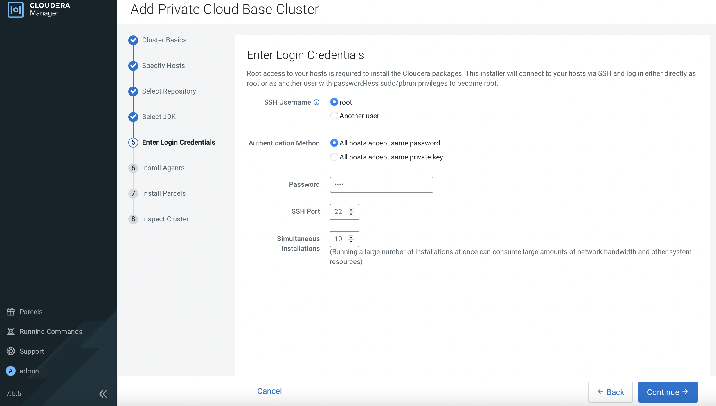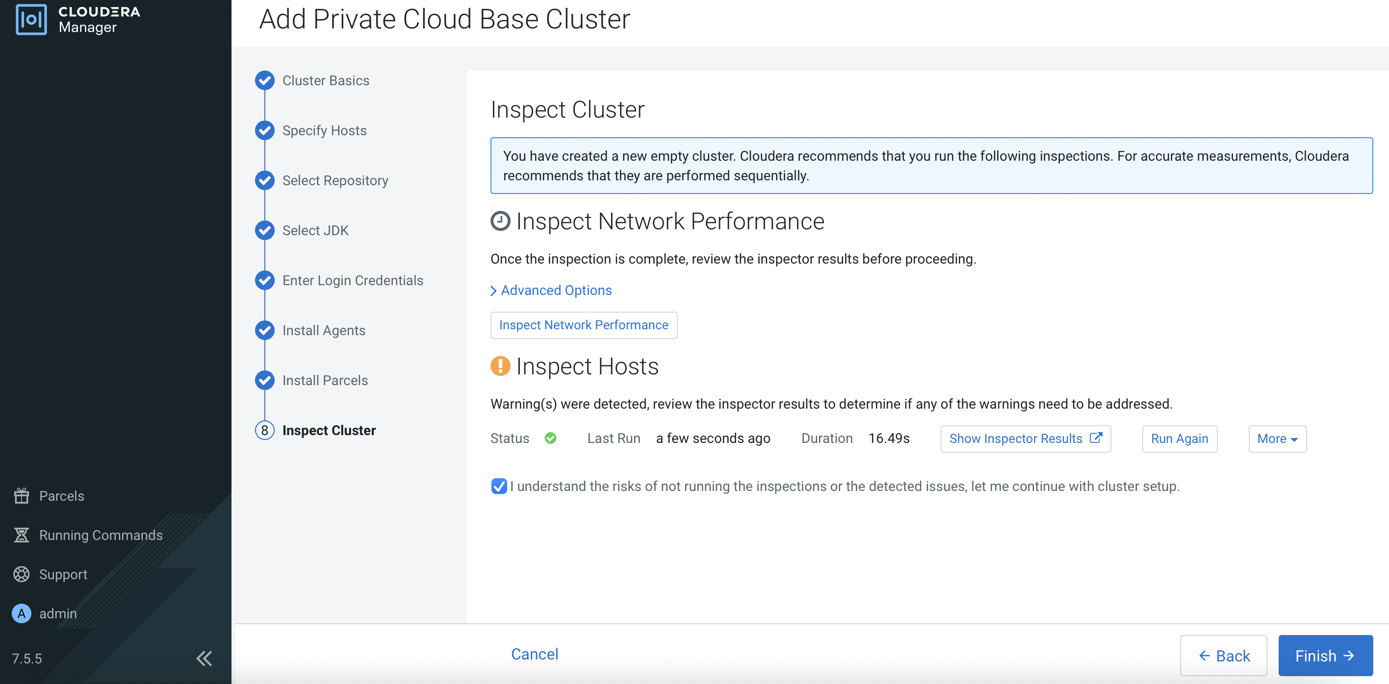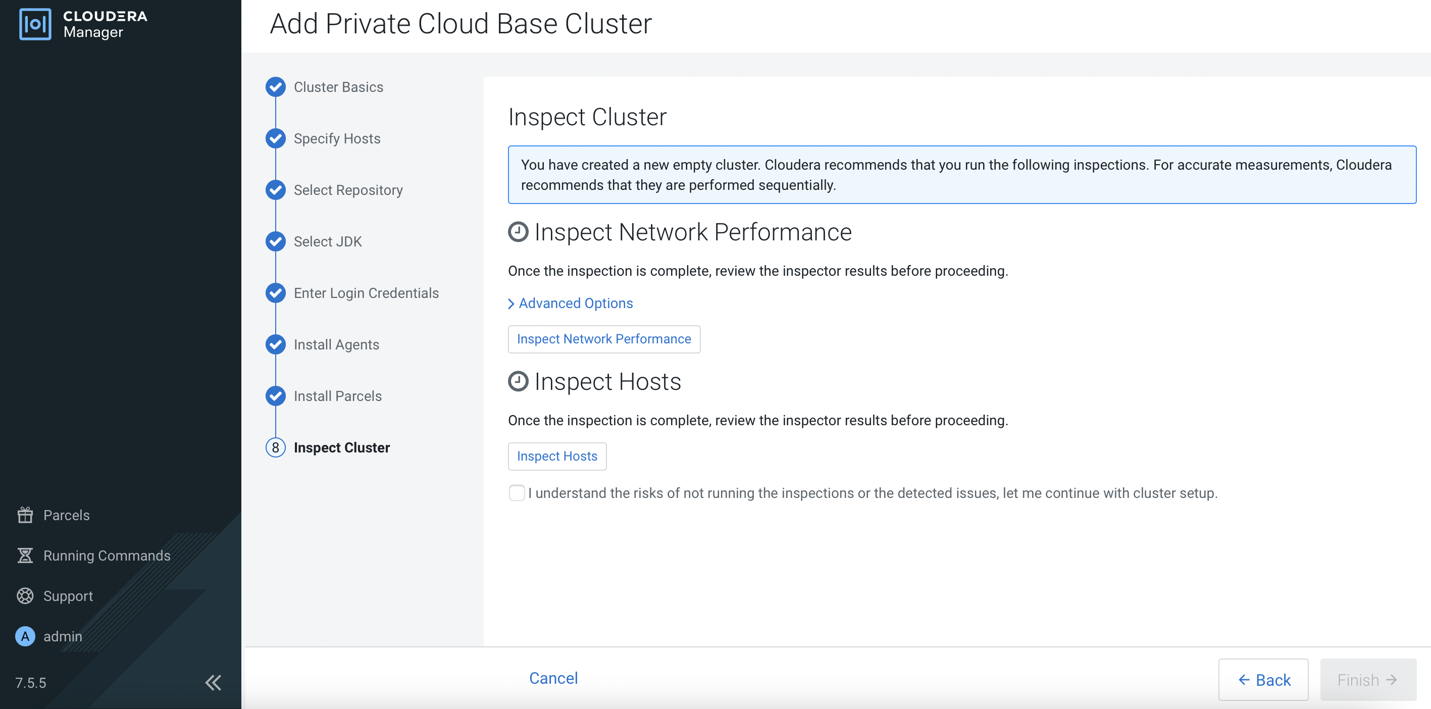 Clusters>Add Cluster. SelectPrivate Cloud Base Clusterand clickContinue.