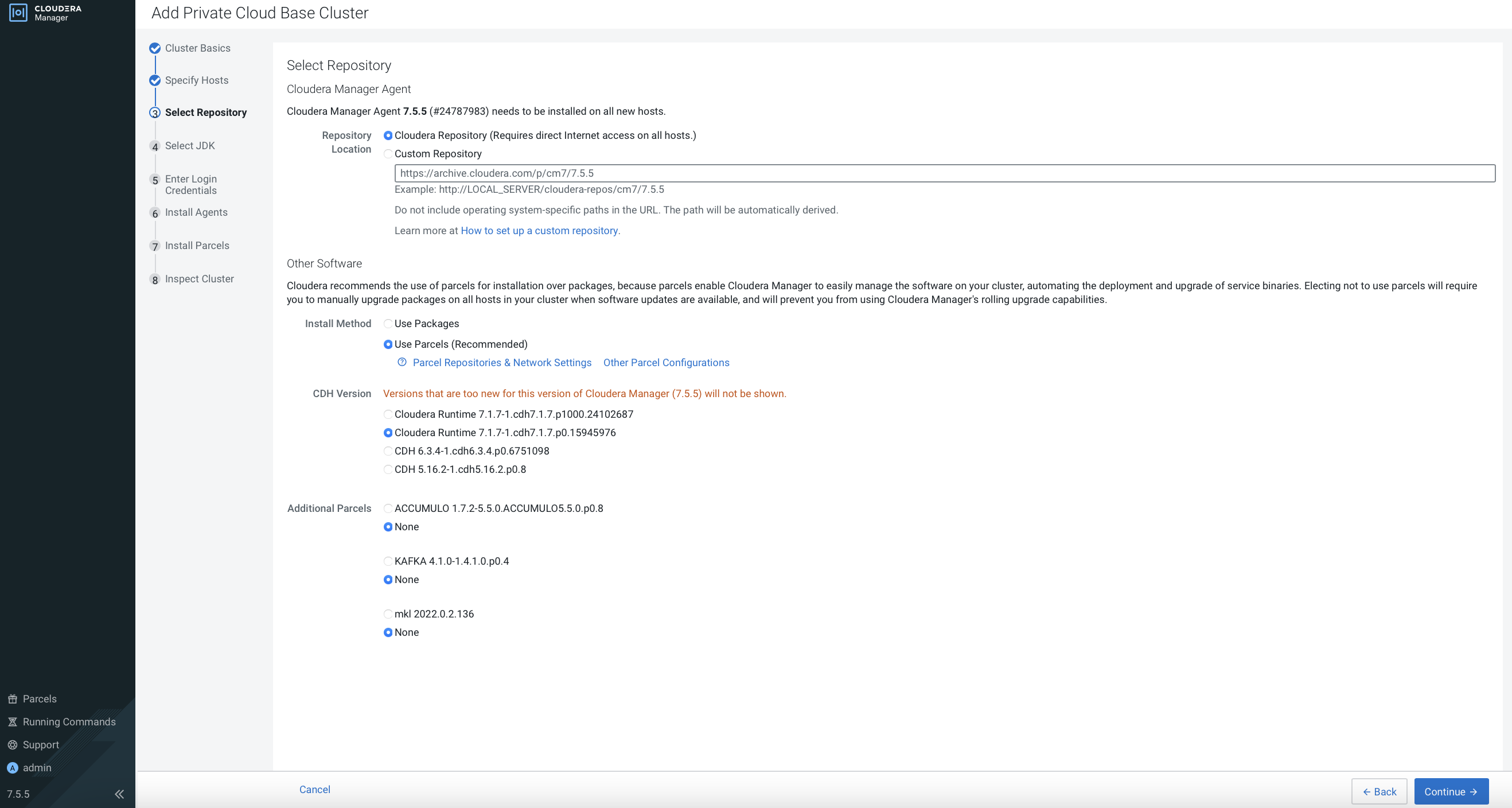 This article explains the necessary steps to install the minimum services on CDP PvC Base platform prior to installing the CDP PvC Data Services on the Kubernetes platform. Please ensure that all the prerequisites have been prepared and CM has already been installed successfully before running this procedure.