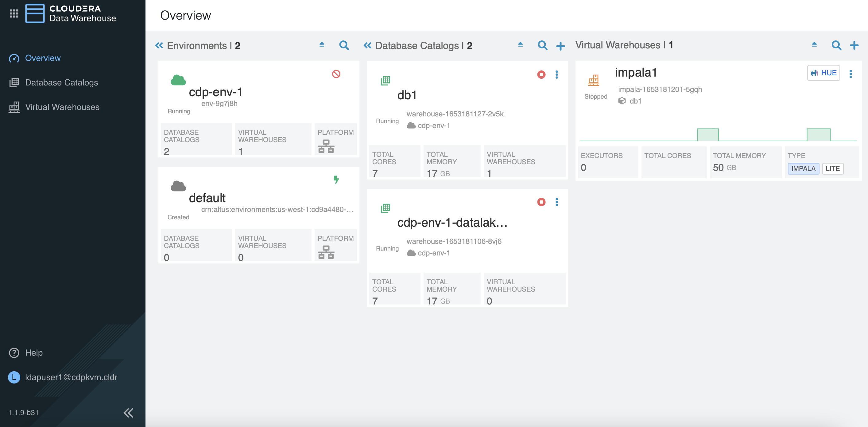 HUEon the newly created virtual warehouse to access the Hue dashboard. -