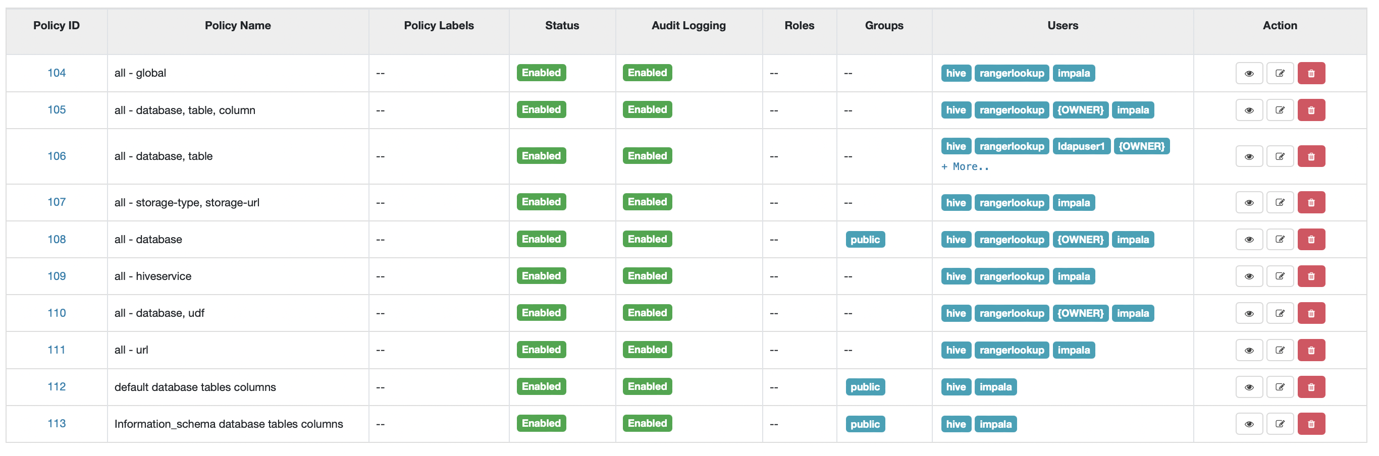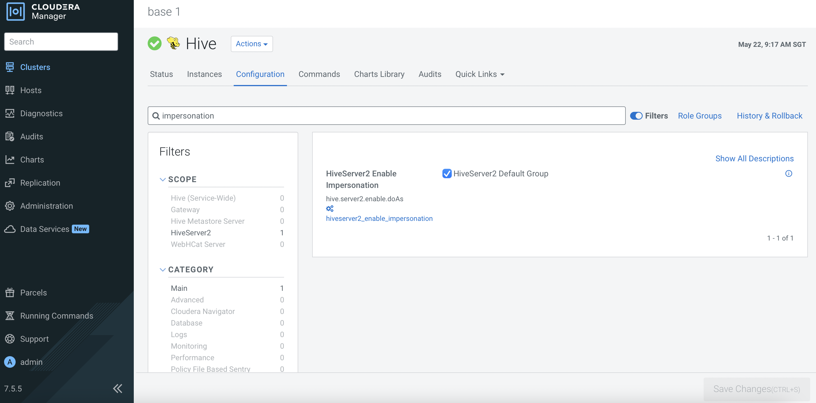 hiveuser to access Hive tables. This is the Hive default setting and Ranger is the only supported and recommended security model. Ensure that Hive Impersonation is enabled as shown below.