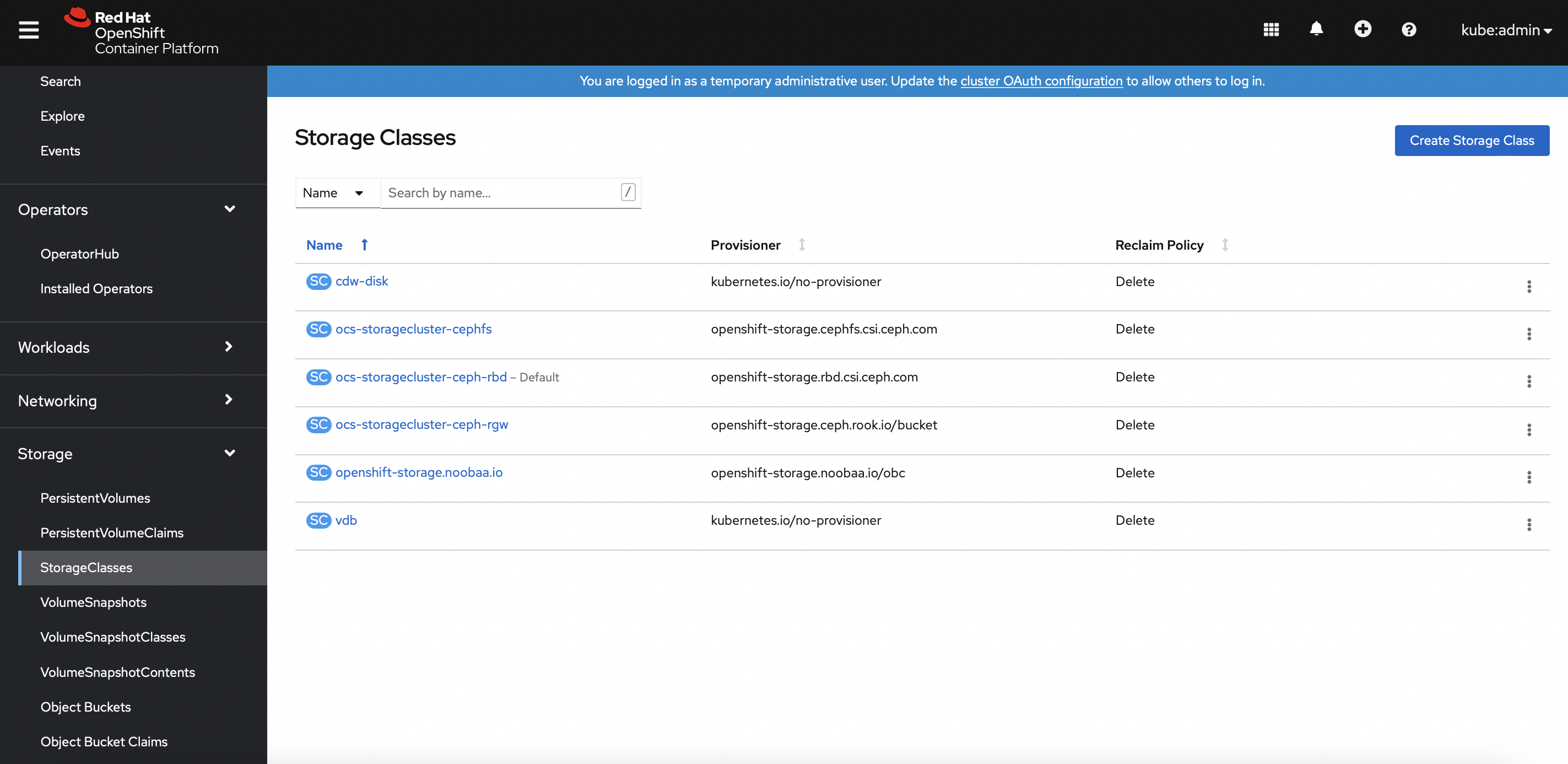 Configure the OCS block storage PV as the default storageClass.