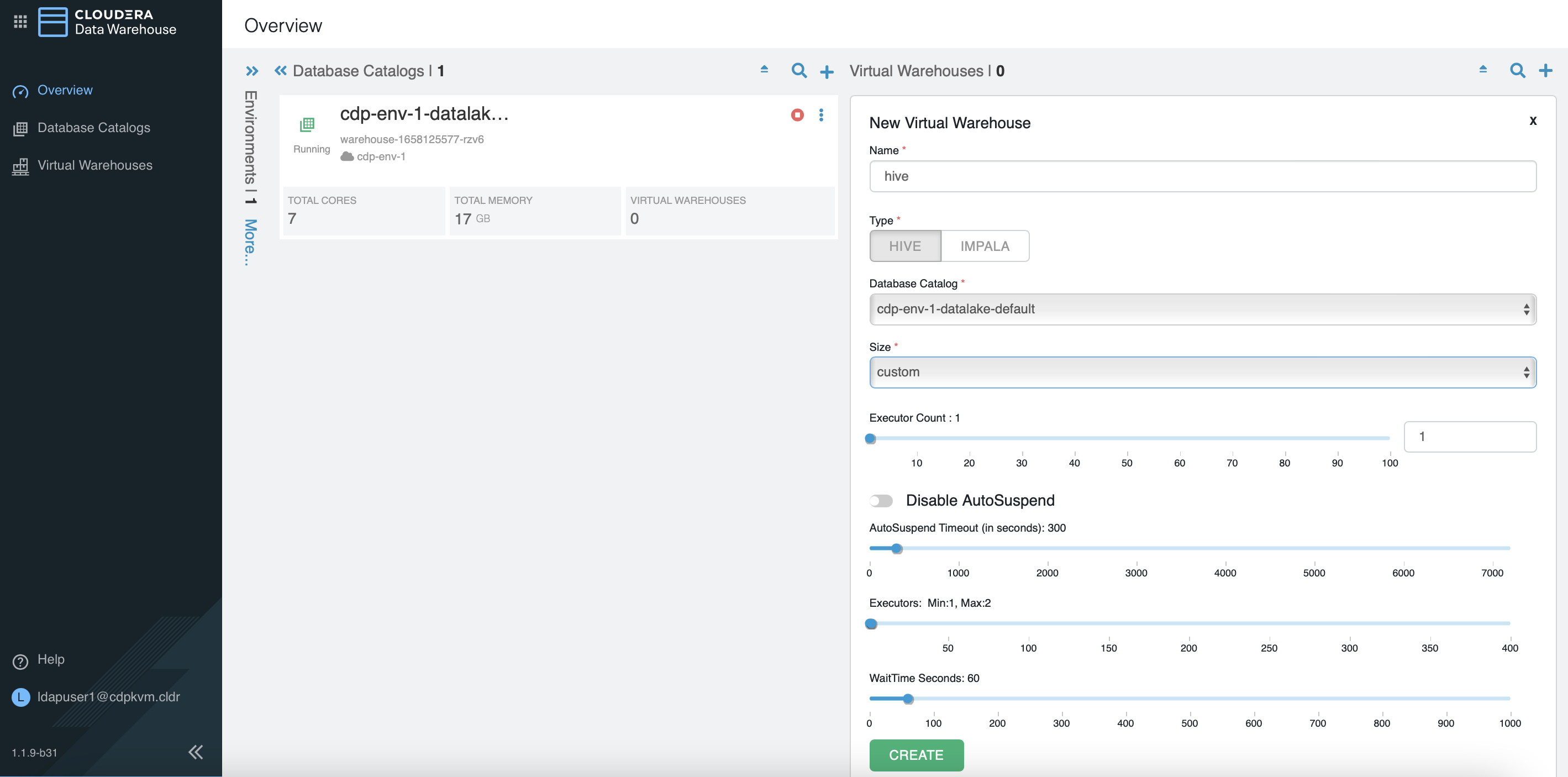 hivevirtual warehouse with minimum 1 executor and maximum 2 executors.