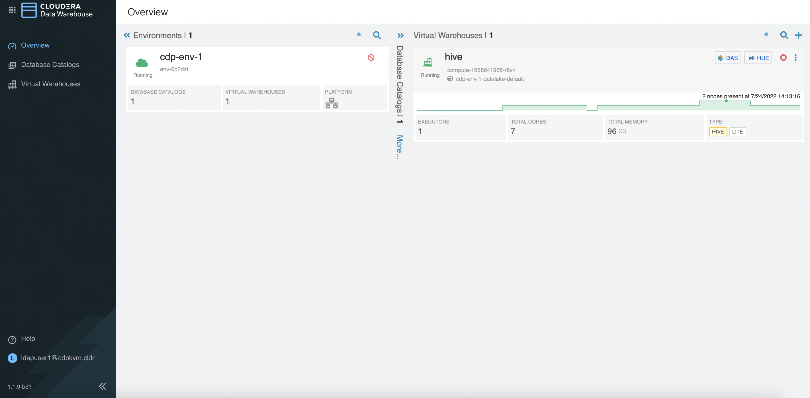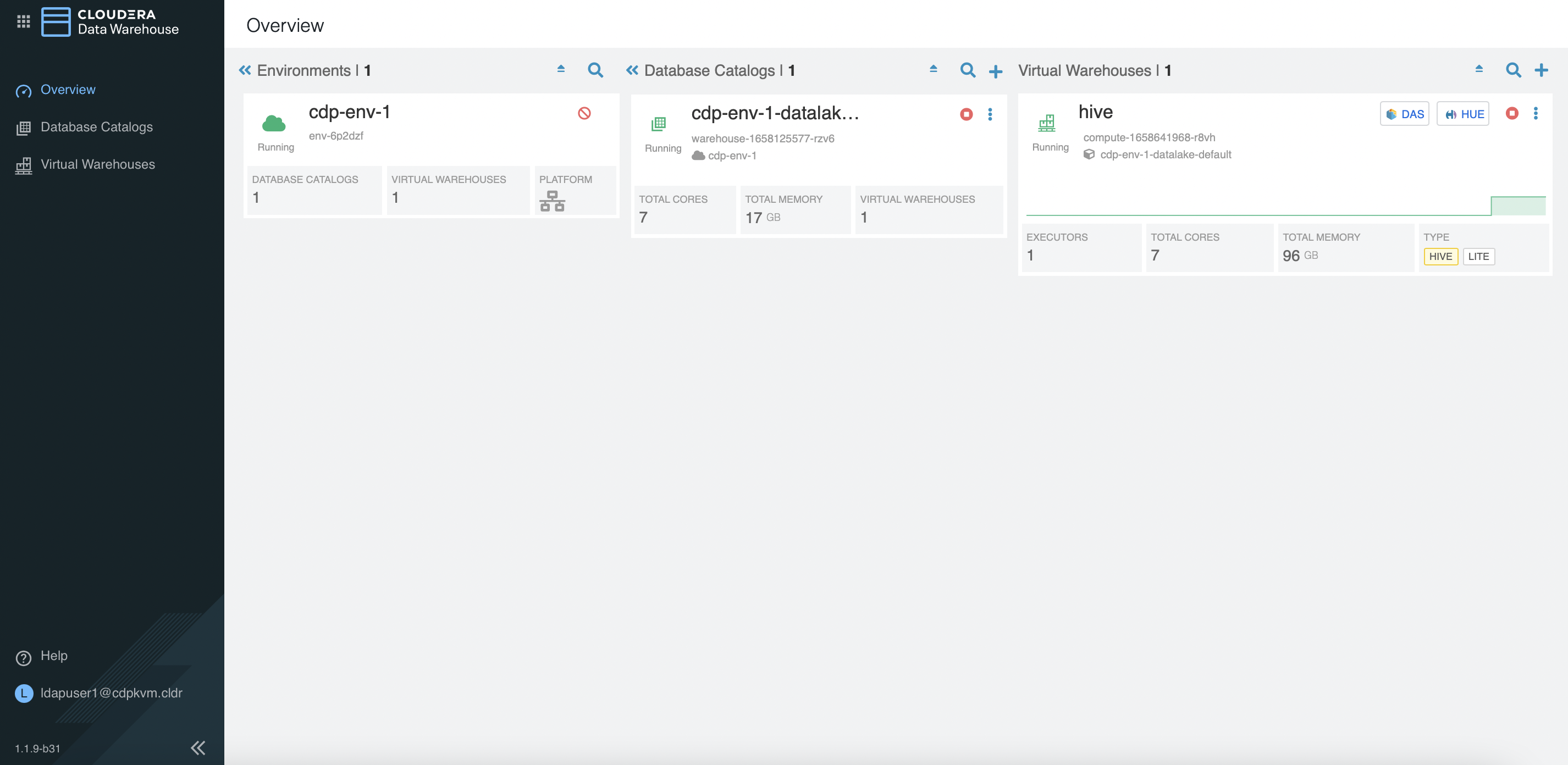 hivenamespace. Note that there is only 1 query-executor pod provisioned.# oc -n compute-1658641968-r8vh get pods NAME READY STATUS RESTARTS AGE das-webapp-0 1/1 Running 0 4m26s hiveserver2-0 1/1 Running 0 4m26s huebackend-0 1/1 Running 0 4m26s huefrontend-78b8577f7c-fb4fp 1/1 Running 0 4m26s query-coordinator-0-0 1/1 Running 0 4m19s query-executor-0-0 1/1 Running 0 4m19s standalone-compute-operator-0 1/1 Running 0 4m26s usage-monitor-5f9cfb8487-2zrrk 1/1 Running 0 4m26s # oc -n compute-1658641968-r8vh get pvc NAME STATUS VOLUME CAPACITY ACCESS MODES STORAGECLASS AGE query-executor-1658641992-volume-query-executor-0-0 Bound local-pv-c8fe6eea 200Gi RWO cdw-disk 4m23s -