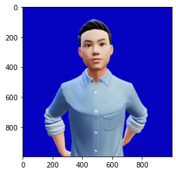 #Replace colour with specific numpy array start = time.time() numpyraw = np.load('bbb.npy') for x in range(0, width): for y in range(0, height): if (numpyraw[x][y] == [0, 0, 0, 0]).all() : numpyraw[x][y] = [5,3,192,255] print("Values of original image:\n",ori_img_array[0:1,0:3]) print("\nValues of tampered image:\n",numpyraw[0:1,0:3]) plt.imshow(numpyraw) end = time.time() print("Time Taken:{}".format(end - start))Values of original image: [[[0 0 0 0] [0 0 0 0] [0 0 0 0]]]